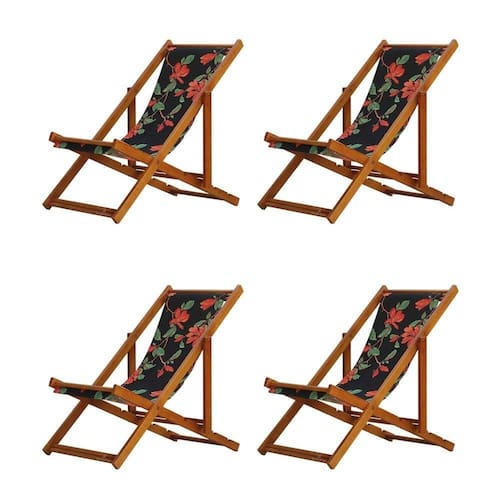 Kit 4 Espreguiçadeira Preguiçosa Dobrável Mel Sb-preto Flores 4 ESPREGUIÇADEIRAS ENVERNIZADA MEL S/BSabe aquele final de tarde que você tanto espera para tirar um descanso merecido? Ou aquela viagem para a praia programada a meses com a família? Pois é, nossas cadeiras espreguiçadeira serve exatamente para esses momentos, com várias opções de cores, os tecidos além de charmosos são hidro-repelentes e se adequam a qualquer ambiente, facilmente removíveis para higienização.Estrutura 100% de madeira maciça e verniz especial, que garante sua qualidade e durabilidade, a espreguiçadeira é totalmente dobrável e reclinável (4 posições de ângulo), perfeita para seu lazer em todos os ambientes, seja ele externo ou interno, esse é o item que definitivamente não pode faltar na vida de quem de fato, quer aproveitar bons momentos! FICHA TÉCNICA DO PRODUTO:04 Níveis de Regulagem de Altura;Tecido Reforçado;Fabricada em Madeira Maciça Pinus;Peso aproximado: 7,5 Kg;Suporta aproximadamente 120 kg;Cor da Madeira: Mel;Acabamento: Envernizada Dimensões aproximadas do Produto:Altura 1: 69 cm;Altura 2: 82 cm;Altura 3: 91 cm;Altura 4: 100 cm;Profundidade: 105 cm. Dimensão aproximada total:Comprimento: 135 cm;Largura: 60 cm; Informações Adicionais:Garantia: 90 dias contra defeitos de fabricação.Acompanha 4 cadeiras Obs. A cor pode variar da foto conforme a tonalidade da madeira e iluminação..