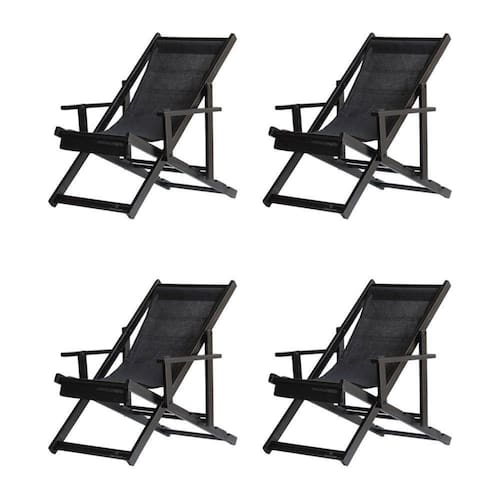 Kit 4 Espreguiçadeiras Dobrável Black Cb-preto