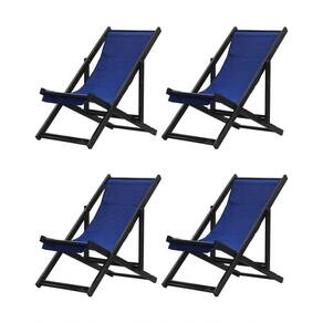 Kit 4 Espreguiçadeiras Dobrável Black Sb-azul Marinho 4 ESPREGUIÇADEIRAS ENVERNIZADAS BLACK S/BSabe aquele final de tarde que você tanto espera para tirar um descanso merecido? Ou aquela viagem para a praia programada a meses com a família? Pois é, nossas cadeiras espreguiçadeira serve exatamente para esses momentos, com várias opções de cores, os tecidos além de charmosos são hidro-repelentes e se adequam a qualquer ambiente, facilmente removíveis para higienização.Estrutura 100% de madeira maciça e verniz especial, que garante sua qualidade e durabilidade, a espreguiçadeira é totalmente dobrável e reclinável (4 posições de ângulo), perfeita para seu lazer em todos os ambientes, seja ele externo ou interno, esse é o item que definitivamente não pode faltar na vida de quem de fato, quer aproveitar bons momentos! FICHA TÉCNICA DO PRODUTO:04 Níveis de Regulagem de Altura;Tecido Reforçado;Fabricada em Madeira Maciça Pinus;Peso aproximado: 7,5 Kg;Suporta aproximadamente 120 kg;Cor da Madeira: PretaAcabamento: Envernizada Dimensões aproximadas do Produto:Altura 1: 69 cm;Altura 2: 82 cm;Altura 3: 91 cm;Altura 4: 100 cm;Profundidade: 105 cm. Dimensão aproximada total:Comprimento: 135 cm;Largura: 60 cm; Informações Adicionais:Garantia: 90 dias contra defeitos de fabricação.Acompanha 4 cadeiras Obs. A cor pode variar da foto conforme a tonalidade da madeira e iluminação..