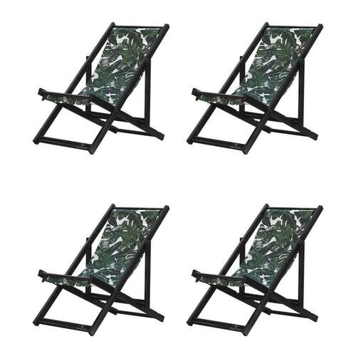 Kit 4 Espreguiçadeiras Dobrável Black Sb-folhas Verdes