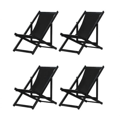 Kit 4 Espreguiçadeiras Dobrável Black Sb-preto 4 ESPREGUIÇADEIRAS ENVERNIZADAS BLACK S/BSabe aquele final de tarde que você tanto espera para tirar um descanso merecido? Ou aquela viagem para a praia programada a meses com a família? Pois é, nossas cadeiras espreguiçadeira serve exatamente para esses momentos, com várias opções de cores, os tecidos além de charmosos são hidro-repelentes e se adequam a qualquer ambiente, facilmente removíveis para higienização.Estrutura 100% de madeira maciça e verniz especial, que garante sua qualidade e durabilidade, a espreguiçadeira é totalmente dobrável e reclinável (4 posições de ângulo), perfeita para seu lazer em todos os ambientes, seja ele externo ou interno, esse é o item que definitivamente não pode faltar na vida de quem de fato, quer aproveitar bons momentos! FICHA TÉCNICA DO PRODUTO:04 Níveis de Regulagem de Altura;Tecido Reforçado;Fabricada em Madeira Maciça Pinus;Peso aproximado: 7,5 Kg;Suporta aproximadamente 120 kg;Cor da Madeira: PretaAcabamento: Envernizada Dimensões aproximadas do Produto:Altura 1: 69 cm;Altura 2: 82 cm;Altura 3: 91 cm;Altura 4: 100 cm;Profundidade: 105 cm. Dimensão aproximada total:Comprimento: 135 cm;Largura: 60 cm; Informações Adicionais:Garantia: 90 dias contra defeitos de fabricação.Acompanha 4 cadeiras Obs. A cor pode variar da foto conforme a tonalidade da madeira e iluminação..