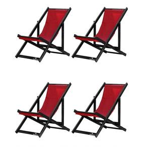 Kit 4 Espreguiçadeiras Dobrável Black Sb-vermelho 4 ESPREGUIÇADEIRAS ENVERNIZADAS BLACK S/BSabe aquele final de tarde que você tanto espera para tirar um descanso merecido? Ou aquela viagem para a praia programada a meses com a família? Pois é, nossas cadeiras espreguiçadeira serve exatamente para esses momentos, com várias opções de cores, os tecidos além de charmosos são hidro-repelentes e se adequam a qualquer ambiente, facilmente removíveis para higienização.Estrutura 100% de madeira maciça e verniz especial, que garante sua qualidade e durabilidade, a espreguiçadeira é totalmente dobrável e reclinável (4 posições de ângulo), perfeita para seu lazer em todos os ambientes, seja ele externo ou interno, esse é o item que definitivamente não pode faltar na vida de quem de fato, quer aproveitar bons momentos! FICHA TÉCNICA DO PRODUTO:04 Níveis de Regulagem de Altura;Tecido Reforçado;Fabricada em Madeira Maciça Pinus;Peso aproximado: 7,5 Kg;Suporta aproximadamente 120 kg;Cor da Madeira: PretaAcabamento: Envernizada Dimensões aproximadas do Produto:Altura 1: 69 cm;Altura 2: 82 cm;Altura 3: 91 cm;Altura 4: 100 cm;Profundidade: 105 cm. Dimensão aproximada total:Comprimento: 135 cm;Largura: 60 cm; Informações Adicionais:Garantia: 90 dias contra defeitos de fabricação.Acompanha 4 cadeiras Obs. A cor pode variar da foto conforme a tonalidade da madeira e iluminação..