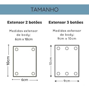 Extensor com 2 botões: 10 cm (C) x 6 cm (L)