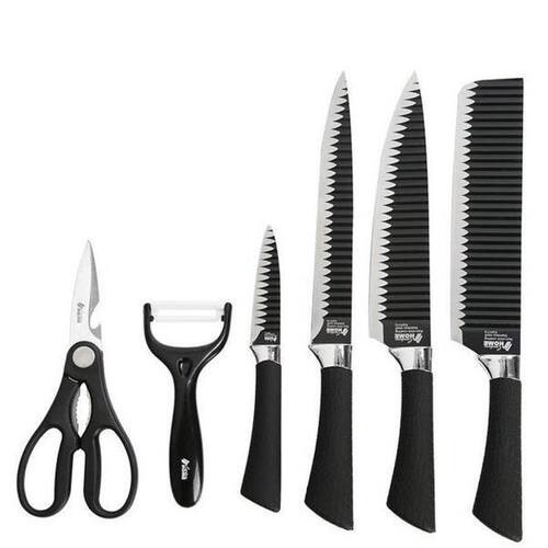 Jogo 4 Facas + Tesoura + Descascador Cabo Preto Ponta
