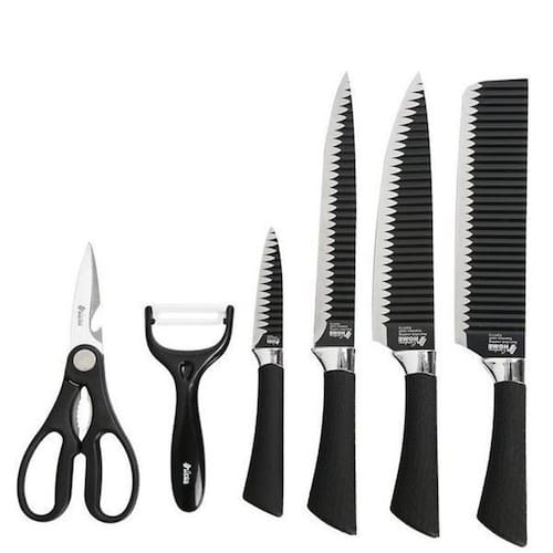 Jogo 4 Facas + Tesoura + Descascador Cabo Preto Ponta O Jogo 4 Facas + Tesoura + Descascador Cabo Preto Ponta é perfeito para quem busca um conjunto completo de utensílios de alta qualidade para a cozinha. Composto por 4 facas cutelo, do chef, pontuda e pequena de serviço , uma tesoura e um descascador de legumes, este conjunto é indispensável para chefs profissionais e amantes da culinária. As facas deste conjunto são projetadas para atender às diferentes necessidades na cozinha. O cutelo é ideal para cortar ossos e carnes mais duras, enquanto a faca do chef é perfeita para cortar, fatiar e picar alimentos. A faca pontuda é ótima para cortar frutas e vegetais, e a faca pequena de serviço é perfeita para tarefas mais delicadas. Além das facas, o conjunto inclui uma tesoura que pode ser Utilizado para cortar ervas, carnes e abrir embalagens. O descascador de legumes facilita a remoção da casca de frutas e vegetais, tornando o processo mais rápido e eficiente. O design do cabo preto e da lâmina preta ondulada confere um visual moderno e elegante ao conjunto. Além disso, o cabo oferece uma aderência confortável e segura durante o uso, garantindo maior precisão e controle. Este conjunto é produzido por uma marca reconhecida por sua excelência em qualidade e durabilidade. Com anos de experiência no mercado, a marca se destaca pela inovação e pelo compromisso em oferecer produtos de alto desempenho. Adquira agora o Jogo 4 Facas + Tesoura + Descascador Cabo Preto Ponta e tenha todas as ferramentas necessárias para preparar suas refeições com facilidade e precisão. Eleve suas habilidades na cozinha com este conjunto completo e de alta qualidade. Marca: Sa, Songle, Nakazaki Ou Siga It-Blue