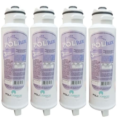 Kit 4 Filtro Refil Electrolux Pa10n Pa20g Pa25g Pa30g Compatível Kit com 4 peças - Filtro Refil compatível com os Purificadores de Água Electrolux ao refil PAPPCA10 Compatível somente com os modelos: PA10N; PA20G; PA25G; PA30G; PA40G caso tenha dúvida de qual é o modelo do aparelho, a referência dele geralmente fica em uma etiqueta na lateral do purificador Filtro específico apenas para os modelos descritos acima. Caso o seu modelo seja outro, ele utiliza outro modelo de refil. Fazer a troca do filtro é muito simples e leva cerca de 3 minutos. Basta girar o filtro vencido para retirá-lo, depois colocar o novo, empurrá-lo para baixo e girá-lo para encaixá-lo. Após a troca, elimine o excesso de carvão ativado deixando escorrer aproximadamente 2 litros de água natural e estará pronto para consumir. O filtro deve ser trocado a cada 6 meses, ou antes, caso estime que seja consumido 3000 litros antes do prazo ou observe redução do fluxo de água. O filtro remove o cloro da água, elimina sabores, retém partículas de sujeira, barro, ferrugem, e ajuda a elevar o Ph. As marcas e produtos citados e ilustrados são propriedades de seus respectivos fabricantes e aparecem apenas para demonstrar a compatibilidade deste produto. Fabricante/marca do refil: Policarbon Eficiência da retenção de partículas: Classe III Eficiência da redução de Cloro livre: Aprovado Eficiência Bacteriológica: Não se aplica Produto de acordo com a norma ABNT NBT 16098:2012. Elemento filtrando destinado ao uso em água que atenda a portaria N 2.914 do Ministério da Saúde. Marca: Não Informado
