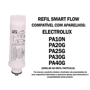 Kit 4 filtro refil compatível eletroclux pa 10n 20 25g 30g 40g pappca10 Kit com 4 filtros 4x filtro refil para os purificadores de água electrolux Compatível somente com os modelos: Pa10n Pa20g Pa25g Pa30g Pa40g ao refil pappca10 caso tenha dúvida de qual é o modelo do aparelho, a referência dele geralmente fica em uma etiqueta na parte de trás ou do lado do purificador Filtro específico apenas para os modelos descritos acima Caso o seu modelo seja outro, ele utiliza outro modelo de refil. Fazer a troca do filtro é realmente muito simples e leva cerca de 3 minutos. Basta girar o filtro vencido para retirá-lo, depois colocar o novo e girá-lo para encaixá-lo. Após a troca, elimine o excesso de carvão ativado deixando escorrer 2 litros de água natural. O filtro remove o cloro da água, elimina sabores, retém partículas de sujeira, barro, ferrugem, eleva o ph, além de eliminar 96% de bactérias e micróbios. As marcas e produtos citados e ilustrados são propriedades de seus respectivos fabricantes e aparecem apenas para demonstrar a compatibilidade deste produto. --------------------------------------------------------------------------- Fabricante/marca do refil: wfs Eficiência da retenção de partículas: classe iii Eficiência da redução de cloro livre: aprovado Eficácia anti microbiana: aprovado eficiência bacteriológica: não se aplica Produto de acordo com a norma abnt nbt 16098:2012. Elemento filtrando destinado ao uso em água que atenda a portaria n 2.914 do ministério da saúde. Marca: Não Informado