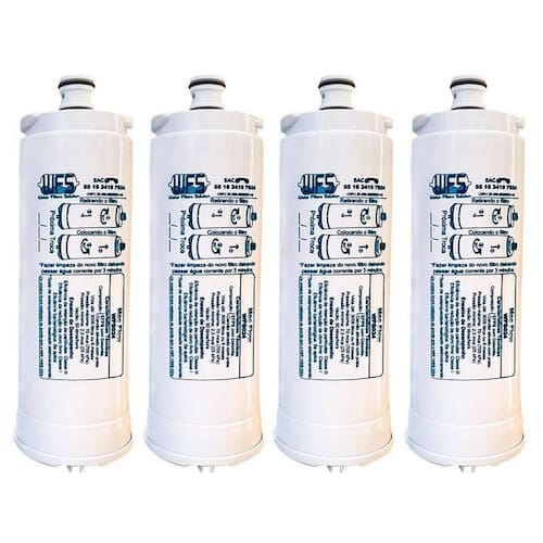 Kit com 4 filtros refil compatíveis com purificadores de água New Up. Remove cloro, elimina sabores, retém partículas de sujeira, barro e ferrugem. Ajuda a elevar o pH. Eficiência da retenção de partículas: Classe III. Eficiência da redução de Cloro livre: Aprovado. Eficácia Anti Microbiana: Aprovado. Eficiência bacteriológica: não se aplica. Produto de acordo com a norma ABNT NBT 16098:2012. Elemento filtrante destinado ao uso em água que atenda a portaria N 2.914 do Ministério da Saúde.Tipo