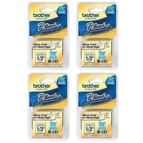 Kit 4 Fita Para Rotulador Brother M231 12MM Preto e Branco