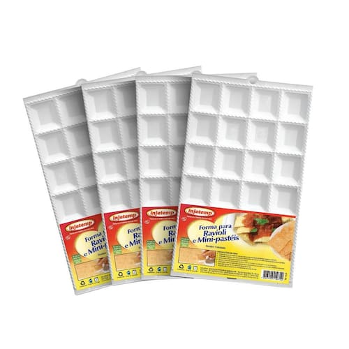 Kit 4 Forma Ravioli E Mini Pastel Faz 24 Por Vez Forma para Ravioli e Pastéis c/24cav Descrição: Feita toda em material atoxico e livre de BPA é extremamente prática pra fazer mini pasteis e ravioli. Muito simples de usar, basta colocar a massa sobre a forma, colocar os recheios na cavidades, por outra camada de massa por cima e passar um rolo para lacrar os pasteis. Obs: Fotos meramente ilustrativas