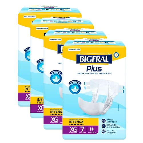 A Bigfral Plus foi desenvolvida para adultos com incontinência urinária intensa. Possui rápida absorção e barreiras antivazamento que proporcionam segurança e uma pele mais seca. O Sistema Antiodor neutraliza odores para mais conforto. Ean: 7896012880289 Ean: 7896012880289