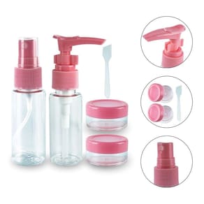Contem: 01 - frasco spray com tampa 35ml 01 - frasco pump bico de pato com trava 35ml 01 - mini potes com tampa 01 - mini colher chanfrada lisa Nosso kit para viagens ou dia a dia, composto por cinco itens essenciais, ele é ideal para ser utilizado como porta álcool em gel, cremes, sabonetes e itens de higiene do dia a dia para te acompanhar em todos os lugares, ocupando pouco espaço na sua bolsa, mala ou necessaire. Um spray multifuncional que pode ser de diversas formas, com líquidos e muito mais. Com um design elegante e prático, ele é fácil de usar e perfeito para manter a higiene durante suas viagens, e o dia a dia, acompanha tampa. O pump bico de pato possui um design inovador e prático, este frasco pump é perfeito para líquidos como shampoo, condicionador ou sabonete. O bico de pato facilita a dosagem, evitando desperdícios e tornando o uso ainda mais conveniente, acompanha trava para a ponta, evitando desperdícios. Dois potes pequenos com tampa super segura e vedada, servem para comportar pequenas doses de cremes, esfoliantes, produtos com maior densidade e muito mais, sendo versátil, ele acompanha uma mini colher chanfrada lisa que te auxiliará a pegar ou armazenar os itens dentro do portinho Com esse kit, você estará pronta para qualquer aventura, mantendo tudo organizado e com um toque de charme rosa Características principais: - fácil de limpar; - pequenos; - leves; - frascos reutilizáveis; - mini colher para pegar ou armazenar os itens; - potes com tampa segura; - evita desperdícios e vazamentos; - design seguro; - material resistente e firme. Medidas: Spray: 10,5 x 2,7 x 2,7 centímetros  a x l x p . 35ml. Pump: 11 x 3 x 3 centímetros  a x l x p . 35ml. Mini pote: 2 x 3,7 x 3,7 centímetros  a x l x p . Mini colher: 8 x 1,5 x 0,1 centímetros  a x l x p . Boas compras ;