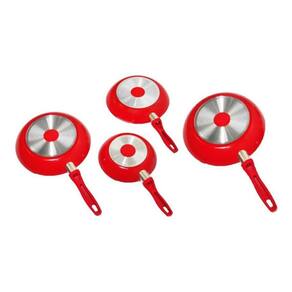 Kit 4 Frigideiras Revestimento Cerâmico Vermelha com Cabo de Silicone Preço por kit contendo 4 unidades Dimensões: 20, 24, 26 e 28 cm diâmetro Espessura do material: 2 mm Material: Alumínio Cor: Vermelho Características - Cabos de silicone; - Revestimento cerâmico interno antiaderente, fácil de limpar e resistente a calor e corrosão; - Mais saudável, pois utiliza menos óleo para o preparo dos alimentos; - Processo de revestimento cerâmico feito a base de água e não tóxico; e - Livre de Cinza e cádmio. OBS: indicada para todos os tipos de fogões, exceto cooktops por indução magnética. INFORMAÇÕES IMPORTANTES: - A s cor es dos produtos podem sofrer variação de tonalidade, de acordo com a configuração do seu dispositivo ou monitor. Ficha técnica - Cor: Vermelho