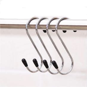 4 Ganchos S de Metal Multiuso Organizador Suporta Até 5kg Os ganchos servem para você usar na sua barra de cozinha, roupeiro, lavanderia e pendurar mais utensílios. Encaixáveis em barras achatadas ou circulares de até 2,5 cm de circunferência.