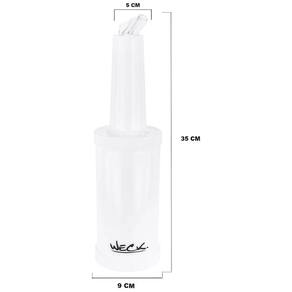 Garantia: 90 dias / Peso: 0,792kg / Cor predominante: branco / Ref: 7798139925006; Dimensões totais: 8cm (D) x 35cm (A); Dimensões sem o bico: 8cm (D) x 18,5cm (A); Capacidade: 1000ml; Cuidados: não usar produtos abrasivos, lavar com esponja macia; Material: plástico; Conteúdo: 2 garrafas profissionais storen pour; Atenção: a tampa do storen (rosca colorida) serve apenas para fechamento do pote, não é para ser utilizada como base. Imagem apenas ilustrativa. Caso seja utilizada como base, a tampa pode se desprender do pote. OBS: O gargalo e o bico facilmente se separam para facilitar a limpeza da peça. Por possuir uma rosca de alta qualidade para evitar vazamentos, muitos flair bartenders utilizam este equipamento para fazer manobras durante suas apresentações. A saída de ar do bico está localizado bem próximo a sua boca, permitindo um fluxo contínuo e suave.