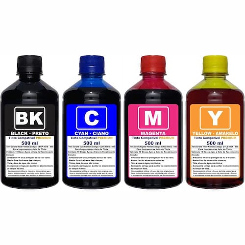 Kit Com 4 Garrafas 500ml de TINTA PREMIUM Compatível Com Impressoras EPSON L3250 L3210 L3150 L3110 L5190