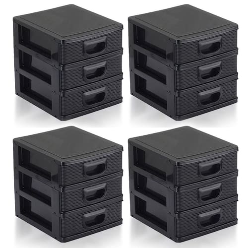Kit 4 Gaveteiro Organizador De Mesa 3 Gavetas Textura Preto
