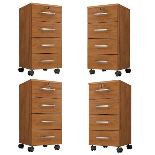 Seu escritório precisa de mais espaço para organização? Que tal o kit com 4 gaveteiros gávea? Ele é feito com materiais de alta qualidade, possui amplo espaço em suas 4 gavetas, facilidade de manuseio com seus pés em rodízios e a segurança para documentos importantes na sua ira gaveta que possui uma chave!! Aproveite esse produto incrível, só aqui na Casa Chick!