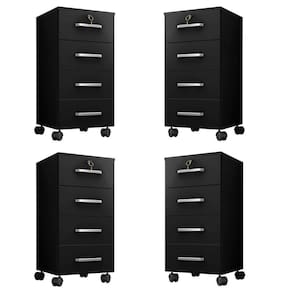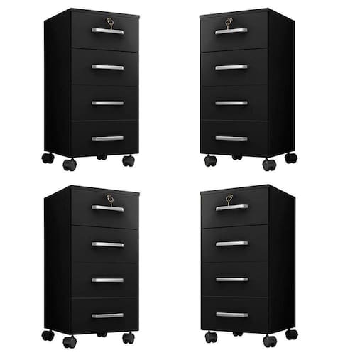 Kit 4 Gaveteiros Escritório Chave E Rodízios 4 Gavetas Gávea Preto