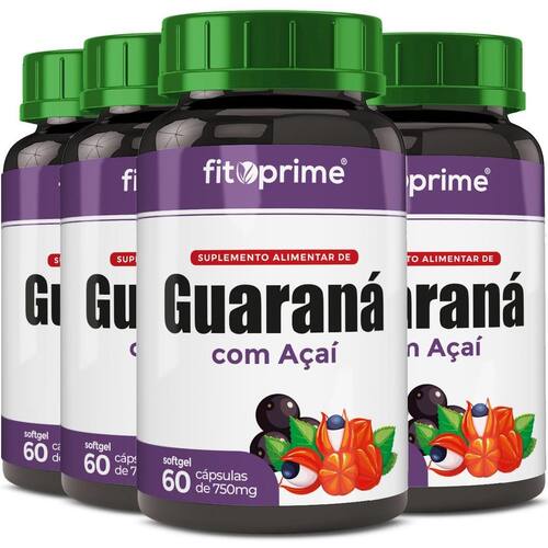 Kit 4 potes de guaraná com açaí 750mg com 60 cápsulas fitoprime