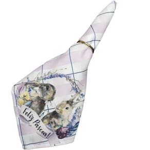 Kit 4 Guardanapos Coelho Da Páscoa Ii Da Charlô 40Cmx40Cm Kit com 4 unidades de Guardanapos de tecido com o tema Páscoa feitas especialmente para você. Um verdadeiro charme para sua mesa para celebrar a época mais doce do ano. Seu material é tecido 100% poliéster com fino acabamento e excelente qualidade. Este tecido é sintético, o que o torna mais resistente a amassados. É também um tecido razoavelmente leve e com alta durabilidade. Medida 40cmx40cm. Marca: Não Informado
