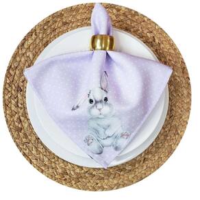 Kit 4 guardanapos de tecido coelho da páscoa e lavanda 40cmx40cm Cor: roxo