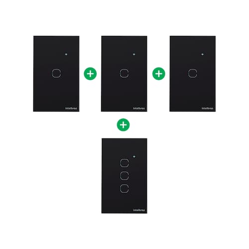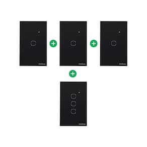 Kit 4 Interruptores Touch Inteligentes de 1 e 3 Teclas Preto