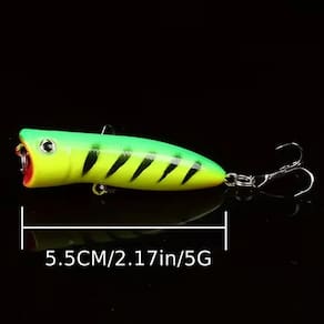 Comprimento: Aproximadamente 5 cm. Peso: Aproximadamente 5g Anzóis: Equipadas com duas garatéias em aço carbono de alta resistência, prontas para o combate. Olhos 3D: Realismo extra para aumentar a atratividade.