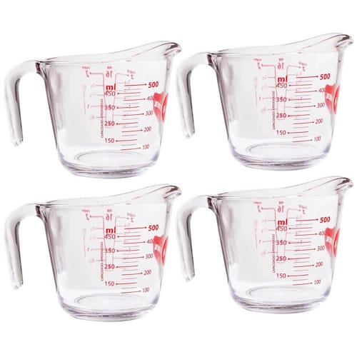 Kit 4 Jarras Medidoras de Vidro Marinex 500ml com Bico e Alça Restaurante Padaria.