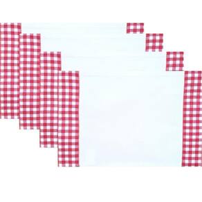 Kit 4 Jogos Americanos Sarja Algodão Branco com Bordado Xadrez Vermelho 45cmx30cm Com a chegada do Natal, a decoração acaba ganhando um novo sentido e novas formas com peças que tenham relação com o espírito natalino. Para a ceia de Natal, ter uma mesa bem posta, decorada e ornamentada devidamente com o tema de Natal deixa tudo mais bonito, por isso, experimente investir em roupa de mesa. Apostar em jogos americanos, sousplats, guardanapos de tecido e porta guardanapos é o ponto inicial para uma mesa decorativa. O jogo americano de Natal cumpre todas essas funções com um diferencial. Seu tema é especialmente elaborado para ser durante a ceia de Natal, uma das noites mais importantes do ano. Seu material é tecido 100% poliéster com fino acabamento e excelente qualidade. Este tecido é sintético e impermeável, o que o torna mais resistente a amassados. É também um tecido razoavelmente leve e com alta durabilidade. Medida 43cmx34cm. Embalagem 4 unidades Marca: Não Informado