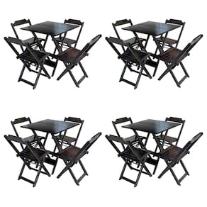 Kit 4 Jogos de Mesa com 4 Cadeiras de Madeira Dobravel 70x70 Ideal para Bar e Restaurante - Tabaco - Marrom