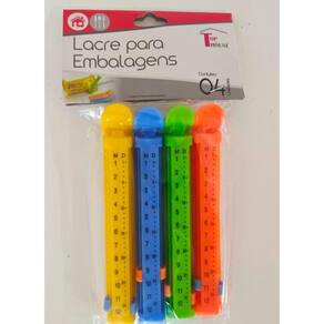 Kit 4 Lacres Vedadores Para Embalagem Prendedor Alimentos DESCRIÇÃO Os lacres para embalagens de alimentos é extremamente vantajoso e útil, fácil de usar e limpar. Restringe a entrada/saída de ar na embalagem, impedindo o alimento de murchar e umedecer, permitindo que os alimentos fiquem conservados por mais tempo. Para rasgos de até 14cm Contém: 4 unidades Cor: : Amarelo, Azul, Verde e Laranja Material: Plástico Comprimento:2cm Largura: 12cm Altura: 1,5cm Peso: 20 gramas Ean: 7898513872596