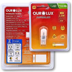 Ilumine seu lar com a Lâmpada LED Bipino da Ourolux, que une eficiência e aconchego em um só produto Com potência de apenas 2,5W e uma temperatura de cor de 2700K, esta lâmpada emite uma luz branca quente, perfeita para criar ambientes acolhedores e relaxantes.