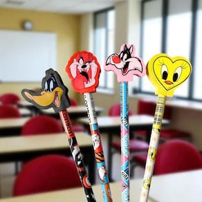 Blister Com 4 Lápis HB Looney Tunes - Leo&Leo Modelos Enviados de forma Escrever ou desenhar nunca foi tão divertido Com o Lápis HB Looney Tunes da Leo&Leo, os personagens mais clássicos e amados do mundo estarão sempre ao lado das crianças e adolescentes, tornando as tarefas escolares e criativas muito mais alegres. Características do Produto: Design Divertido: Corpo redondo com 4 estampas exclusivas dos personagens Looney Tunes. Borracha Removível: No topo do lápis, disponível em 4 formatos diferentes, com estampas decorativas que encantam. Material Atóxico e Seguro: Fabricado com materiais de alta qualidade, seguro para uso por crianças. Traço Firme e Suave: Mina HB que escreve macio e precisa, perfeita para escrita e desenho. Fácil de Apontar: Lápis resistente que permite um apontamento rápido e prático. Borracha Eficiente: Apaga com facilidade, deixando as anotações sempre limpas. Corpo Redondo e Confortável: Design ergonômico que garante maior conforto durante o uso prolongado. Quantidade: 4 Lápis Benefícios Adicionais: Estimula a Criatividade: Os personagens incentivam a imaginação e tornam o aprendizado mais envolvente. Versátil: Ideal para uso escolar, em casa ou em atividades artísticas. Colecionável: Disponível em unidades individuais, permitindo escolher a estampa favorita ou colecionar todos os modelos. Durabilidade e Qualidade: Mina resistente a quebras e lápis durável, pronto para acompanhar o ritmo das crianças. Com o Lápis HB Looney Tunes da Leo&Leo, estudar, aprender e criar se torna uma experiência mais divertida e . Tenha sempre ao seu lado os personagens mais queridos para tornar cada dia mais alegre e produtivo