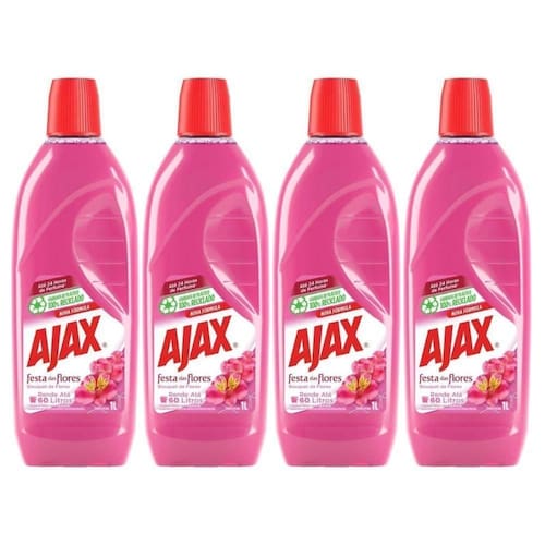 Kit com 4 Limpador Diluível Ajax Festa Das Flores Bouquet De Flores 1000Ml