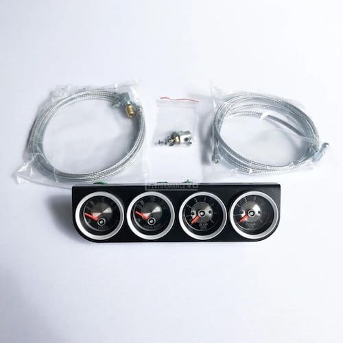 Kit com 4 Manômetros Mecânico Injeção para Ford Maverick com Layout Retrô. Composição do kit: Manômetro voltímetro; Manômetro temperatura de água elétrico; Manômetro pressão de óleo mecânico; Manômetro pressão de combustível mecânico para injeção; Todos os manômetros acompanham luz de led verde; Kit de instalação AEROQUIP com adaptador para pressão de óleo mecânico; Kit de instalação AEROQUIP para pressão de combustível; Sensor e adaptador para temperatura de água elétrico; Acompanha moldura e parafusos de fixação; Os mostradores são fabricados em CNC com material inox; Disponível somente no tamanho de 52mm com aro prata; Manual de instalação com informações; Alto padrão de acabamento. Produto exclusivamente desenvolvido pelo PerformanceV8 Recomendamos que a instalação seja realizada por um profissional qualificado. Garantia: 3 meses Marca: PerformanceV8 Ean: 7999603057609