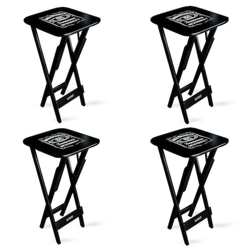 Kit 4 Mesas Bistrô Dobrável Jack Daniel's Madeira Preta - Cor: Preto