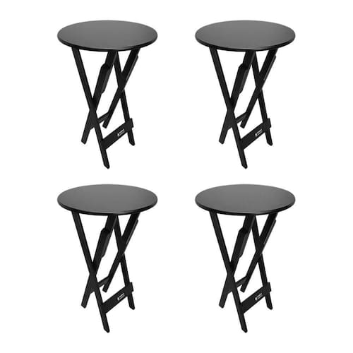 Kit 4 Mesas Bistrôs Dobráveis De Madeira Redonda Preta - Tarimatã
