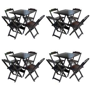 Kit 4 Mesas Dobraveis 70x70 Em Madeira Padrão Com 4 Cadeiras - Tabaco - Cor: Marrom