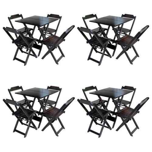 Kit 4 Jogos De Mesa Com 4 Cadeiras De Madeira Dobravel 70x70 Ideal Para Bar E Restaurante - Tabacoé ideal para bares, restaurantes, estabelecimentos, áreas de lazer e tambem para sua casa. Feito em madeira maciça, tornando resistentes e duráveis. Seu design permite que seja encaixado em qualquer ambiente, trazendo um toque a mais para seu estabelecimento. Além de sua durabilidade, o que lhe trará conforto para servir seus clientes. Por ser dobrável torna-se mais fácil guardar, manusear e limpar o produto.Atenção: EVITE USAR PRODUTOS ABRASIVOS E QUíMICOS PARA LIMPEZA DO PRODUTO, aconselha-se o uso de pano umedecido para melhor conservação; mantenha o produto fora de chuva e sol constantesMESA Cor: Tabaco Modelo: Dobravel Dimensões: Altura 76cm | Largura 70cm | Profundidade 70cmCADEIRA Cor: Tabaco Modelo: Dobravel Dimensões: Altura 80cm | Largura 45cm | Profundidade 42cmKit 4 Mesas Dobraveis 70x70 em Madeira PadrÃo com 4 Cadeiras - Tabaco Marca: Preguiçosa