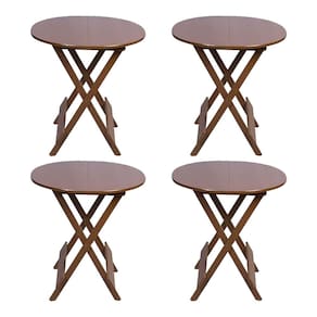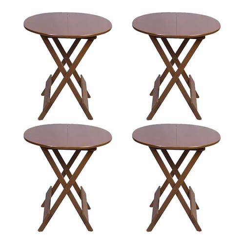 Kit 4 Mesas Redondas Dobráveis em Madeira Maciça 70x70 Imbuia Ideal para Bares e Restaurantes - Marrom