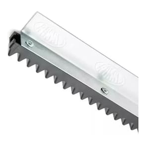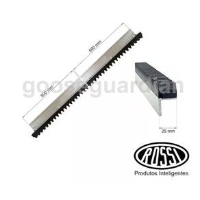 8x Barras de 50cm. Total de 4 metros. • Cantoneira # 18 (1,25mm) zincada • Gomo em Nylon Industrial preto + 20% fibra de vidro • Medidas da Cantoneira 500x25x25mm (CxAxL) • Medidas da Cantoneira com os gomos 510x53x25mm (CxAxL) • Distância aproximada entre os dentes 15mm • Indicada para portões de até 600kg