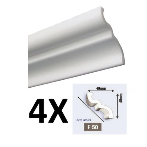 dimensões: modelo com 2 metros de comprimento cada peça desenvolvido em poliestireno extrudado kit composto por 2 pacotes, totalizando 8 metros