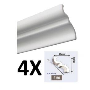 Moldura de isopor para teto da epex possui design moderno e sofisticado. Ela é um tipo de acabamento para esconder a junção entre a parede e o teto da casa, proporcionando um visual mais harmônico e uniforme. Especificação do produto: Fácil e rápida instalação Não descola ou mancha com a umidade É lavável e fácil de limpar Não acumula mofo, fungos ou bactérias Pode ser pintada com qualquer tinta a base d' água Facilidade e agilidade na aplicação Dimensões: Modelo com 2 metros de comprimento cada peça Desenvolvido em poliestireno extrudado Kit composto por 2 pacotes, totalizando 8 metros Instruções para aplicação: Primeiro passo deve ser a limpeza do mesmo Sendo feita com um pano úmido e detergente para eliminar possíveis resíduos e sujeiras Segundo passo é a colagem, onde deve aplicar uma fina camada de adesivo/cola apropriado Em seguida fazer uma leve pressão sobre o local por alguns segundos Em último, para a pintura, deve ser feito o preenchimento das juntas e pequenas fendas com o adesivo de colagem Espere o tempo necessário para a secagem e em seguida pinte com tinta látex ou à base d'água, sem diluição Fotos ambientadas para melhor vizualização de dimensão e aplicação Marca: Não Informado