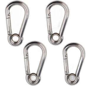 Kit 4 mosquetão inox trava automática 7mm x 70mm com olhal Acessório multiuso, utilizado para fixação de cabos, chaveiros, cordas. Construído em aço 316 de alta resistência para utilização em ambientes marinhos.
