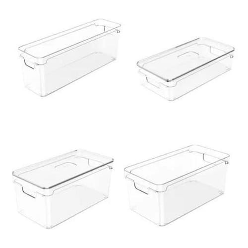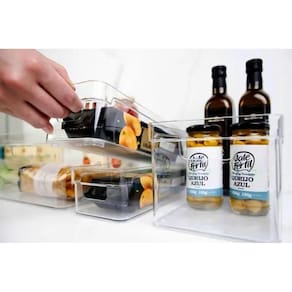 Kit 4 organizador de mantimentos armario cozinha Cor: natural F6033 Maple decor Descrição Kit 4 organizadores de armário, conforme abaixo. 1 organizador clear com tampa dimensões 30 x 15 x 13 cm 1 organizador clear com tampa dimensões 30 x 15 x 7 cm 1 organizador clear sem tampa dimensões 37 x 10 x 13 cm 1 organizador clear sem tampa dimensões 30 x 15 x 13 cm O organizador de armários clear é o novo padrão de transparência na organização. - empilhe - encaixe - e enxergue facilmente o conteúdo, mantendo tudo em ordem. Seu design foi pensado para permitir diversas composições e proporcionar máximo aproveitamento de espaço nos ambientes. Produzido em material resistente o organizador possui alças confortáveis que facilitam na hora do transporte. Na despensa ou na cozinha, no quarto ou na lavanderia, a linha clear é indispensável para auxiliar você na organização da sua casa. pote organizador despensa organizador de cozinha organizador para geladeira organizador de latinhas organizador de armários de cozinha organizador para lavanderia organizador até para maquiagens, escritórios, brinquedos, ideal para todos os ambientes da casa. Material: - polipropileno: alta resistência a impactos e ao calor. Não transfere odor, nem gosto aos alimentos. Atóxico, pode entrar em contato com alimentos. Resistência à água fervente, suportando até 150 c; - poliestireno: translúcido com baixa resistência a impactos. Ótima transparência e alto brilho. Obs imagens ilustrativas