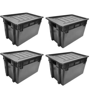 Kit 4 Organizador Multiuso Caixa 60 Lts Preta Com Tampa