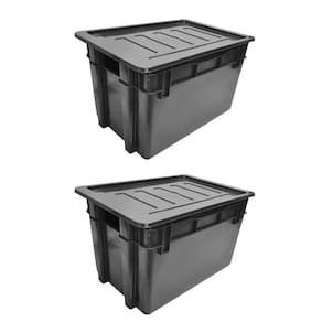 Caixa reforçada 60 litros preta, empilhavel, com tampa, resistente.