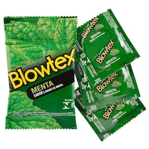 O preservativo Blowtex Menta tem o irresistível sabor e aroma de Menta. para estimular todos os sentidos. Feito de látex liso. proporciona mais sensibilidade e muito prazer. Um clima quente e uma sensação refrescante. Todos os preservativos são testados eletronicamente.