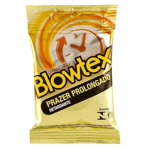 O gel retardante que está na parte interna da Blowtex Prazer Prolongado ajuda a deixar a relação mais gostosa por mais tempo. Na parte externa. o gel lubrificante é tradicional.